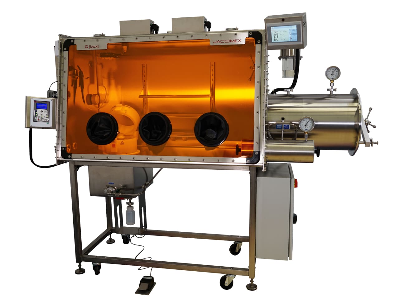 Aus diesen Prozessen lernend und die kritischen Eigenschaften für unsere Kunden verstehend, um die besten Ergebnisse zu liefern und deren Forschung und Entwicklung zu schützen, bietet Jacomex komplette Lösungen, die in inerte Handschuhkastensysteme integriert sind, welche Spuren (<1ppm) von Sauerstoff (O2), Feuchtigkeit (H2O) und optional Stickstoff (N2) entfernen.
